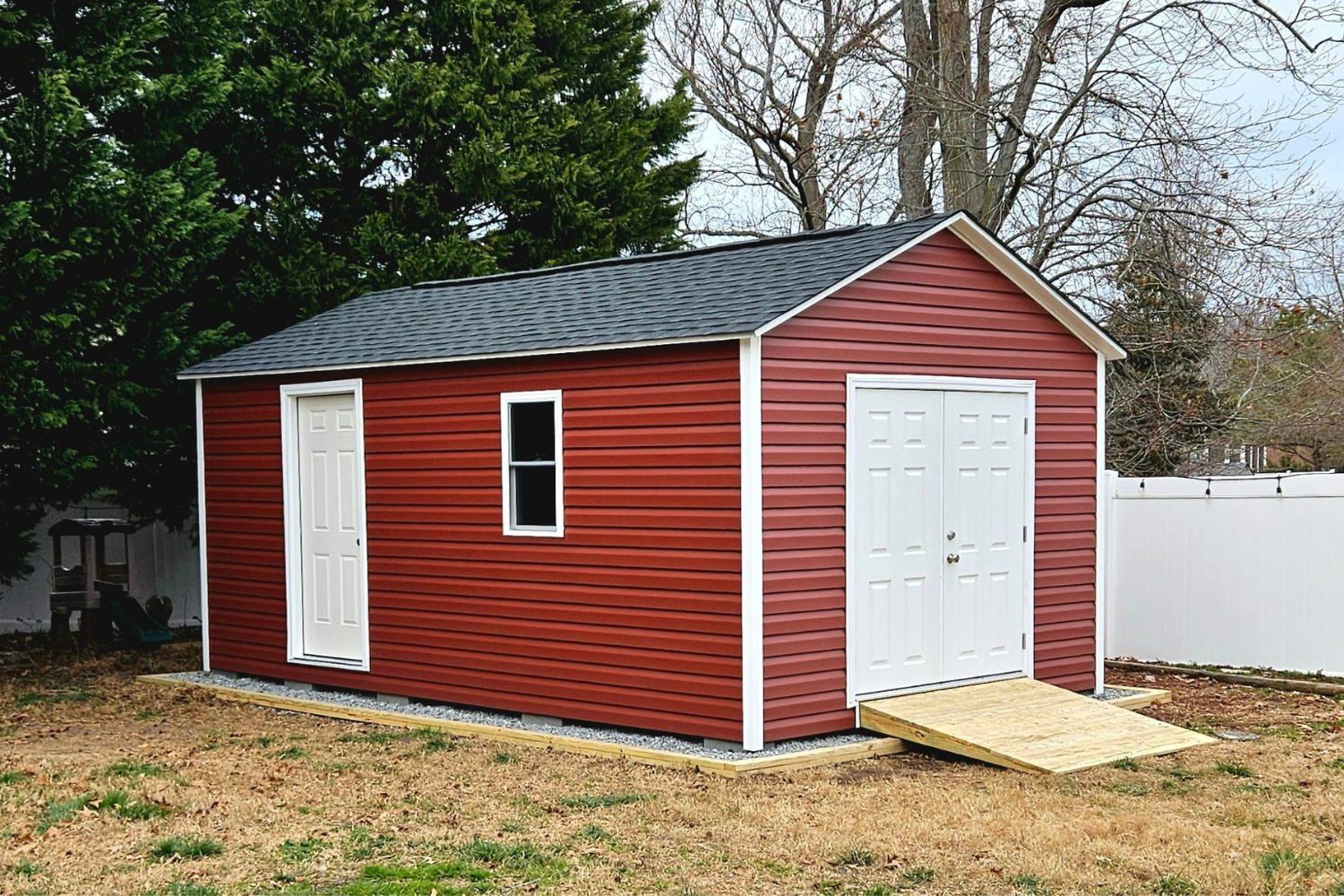 No need to worry about taking down fences or having trucks drive over your lawn. We hand-carry all shed materials through your gate and build your entire shed onsite in one to three days. Upon completion, we thoroughly clean up our site.